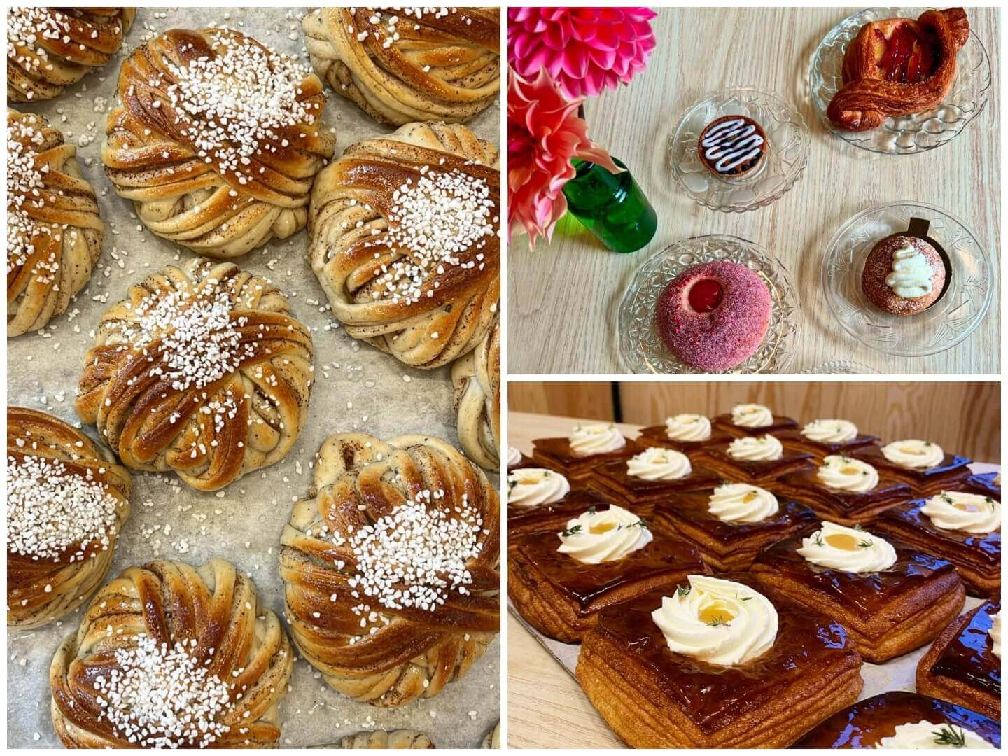 Lilla Manilla är också ett bageri med personlighet och omtanke. Sortimentet är medvetet litet, men varje bröd och bulle är bakat med precision och kärlek. Här är det kvalitet som gäller framför kvantitet. Surdegsbröden har lång jäsningstid, bullarna är saftiga och doftar av kardemumma och smör, och bakverken bär tydliga influenser från det franska hantverket men med en lekfull svensk touch. I disken kan man ibland hitta små överraskningar, som den humoristiska mackan med jordnötssmör och sylt, en blinkning till barndomens smaker. Det är just den typen av oväntade detaljer som gör att Lilla Manilla känns levande och genuint, ett ställe som inte tar sig självt på för stort allvar, men som ändå andas kvalitet i varje steg.