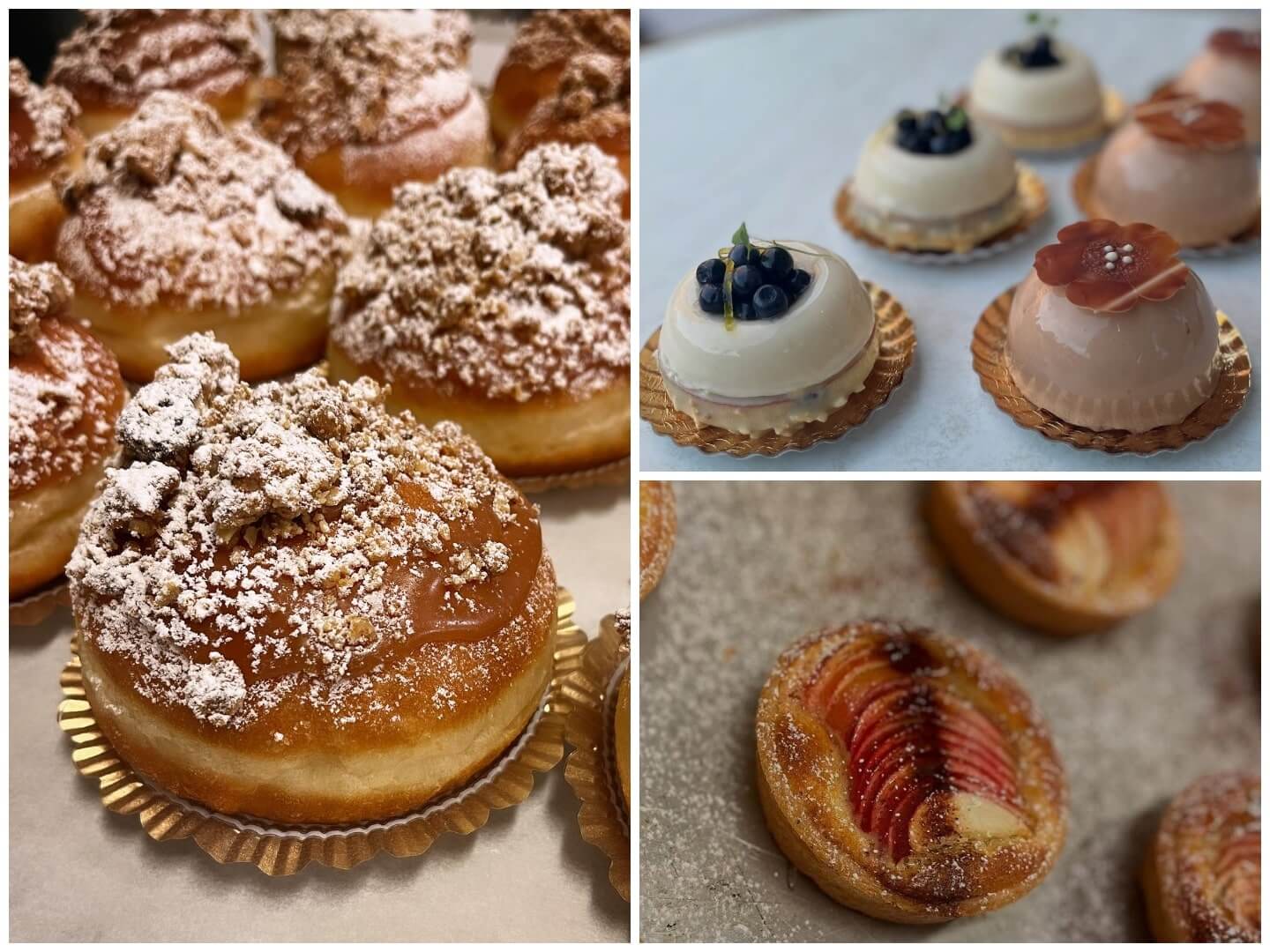 På Lundbergs är bakningen lika mycket en konst av omsorg som av teknik. Mjölet hämtas från små, ekologiska kvarnar runt om i Sverige, och varje steg i processen är noggrant planerat. Brödsortimentet är både klassiskt och fyllt av karaktär: stenugnsbakat surdegsbröd som långjäser i kyl över natten, traditionella finska rågbröd, jämtländska tunnbröd och franska baguetter. Husets vita, ett mildare vetesurdegsbröd med vacker skorpa, har snabbt blivit en av kundernas absoluta favoriter.
